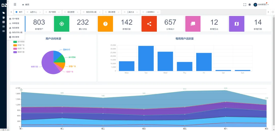 DncZeus是一个基于 .NET 7 + Vue.js 的前后端分离的通用后台管理系统框架。后端使用.NET 7 + Entity Framework Core 构建,UI 则是目前流行的基于 Vue.js 的 iView。项目实现了前后端的动态权限管理和控制以及基于 JWT 的用户令牌认证机制,让前后端的交互更流畅。