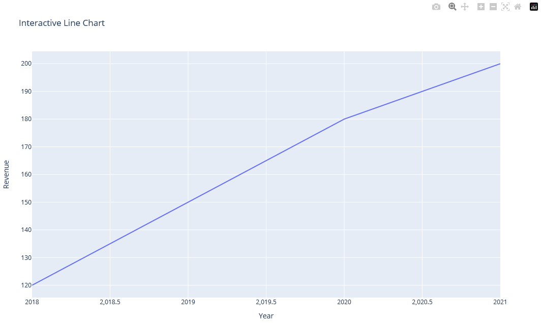 fig = px.line(data, x='Year', y='Revenue', title='Interactive Line Chart')