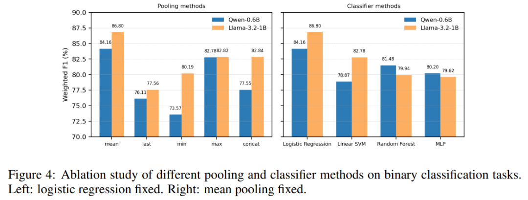 - 均值池化(mean pooling)显著优于其他所有池化均值能在保留全局信息的同时,得到紧凑稳定的特征,最适合评估任务。