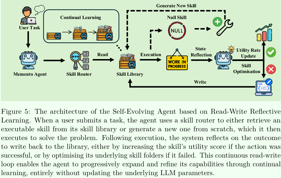 一个叫Memento-Skills的全新系统,抛弃了消耗大量算力微调模型参数的路子,完全依靠读写反思、“写日记”式的学习机制,在不改变模型参数的情况下实现能力的持续跃升。