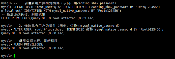 -- 2. 修改已有用户的插件(示例:切换为mysql_native_password)