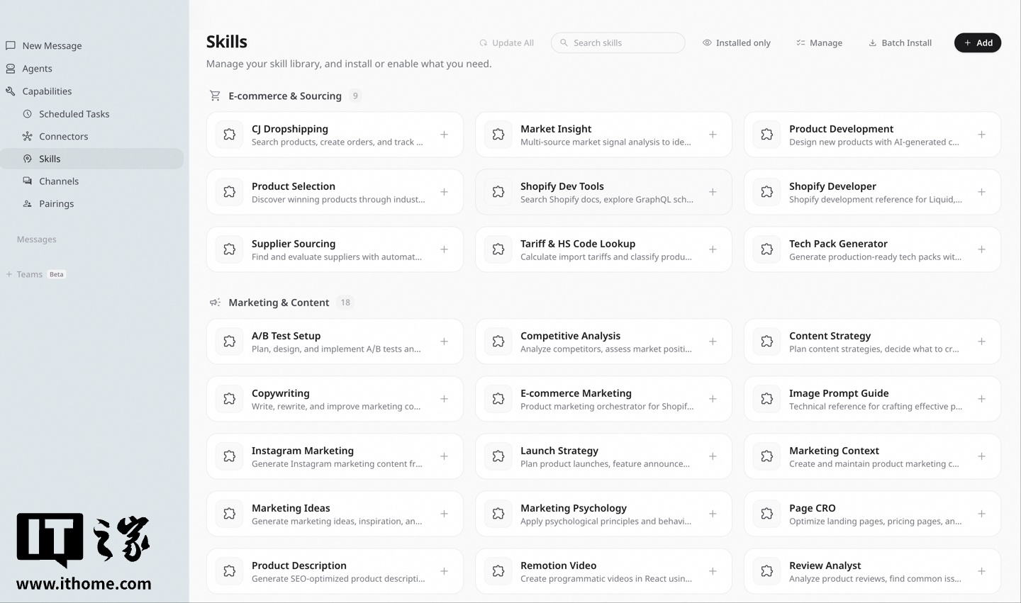 Accio Work整合了多项专业功能模块,包含电商专家系统、店铺运营工具以及一件代发服务等核心组件。该平台针对商业场景特别开发了多样化技能组合,服务范围涵盖电商供应链管理、营销内容产出、市场数据分析以及金融财务处理等关键环节。用户仅需提供基础创意,系统即可自动完成市场评估、产品筛选、店铺设计到商品上架全流程操作,最快仨0分钟就能打造出可直接运营的线上店铺。