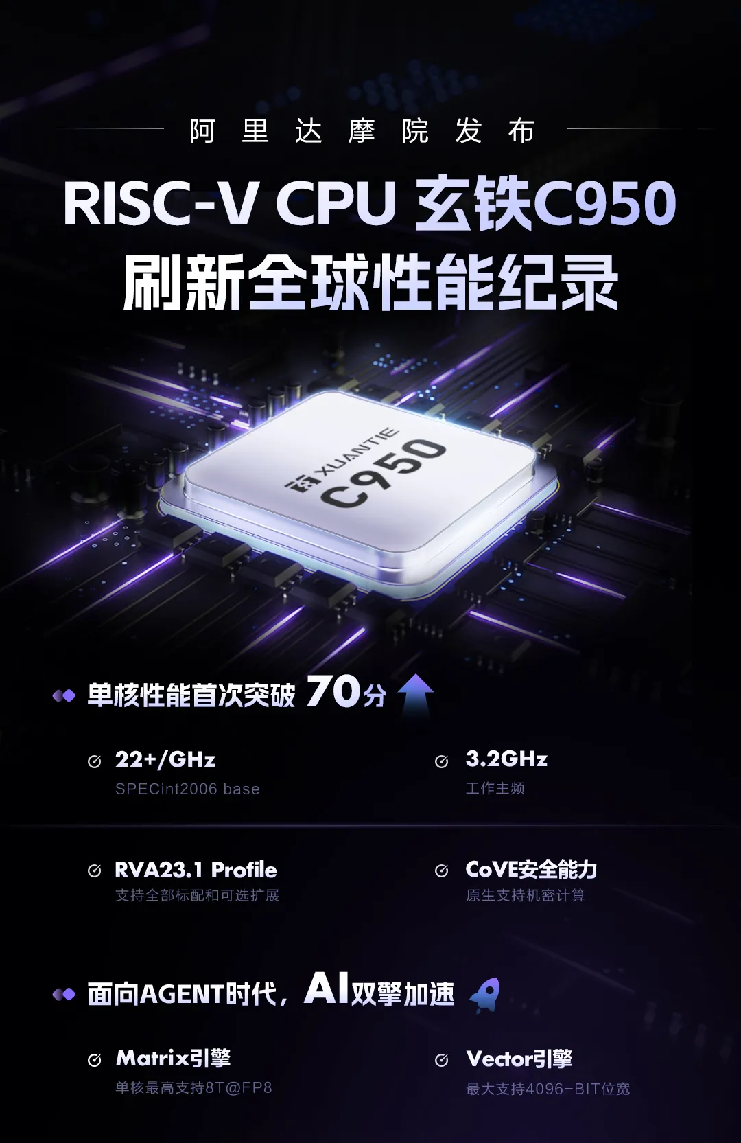达摩院最新发布的玄铁C950处理器引发行业关注,这款基于RISC-V架构的旗舰芯片在性能上实现了重大突破。