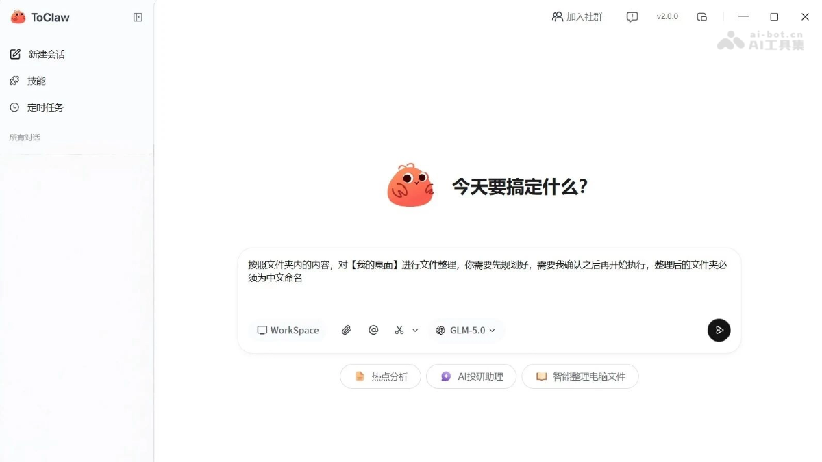 - 开始使用:在对话框输入自然语言指令,系统将自动理解并执行相应操作。