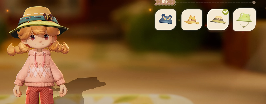 最后就是一些小饰品了,比如说挂件以及帽子等,其中帽子方面的选择比较少,不过设置得还是很可爱的,基本上都动物元素的帽子,玩家们可以任意选择一款可爱的帽子进行搭配,这样就能正式开启冒险了。