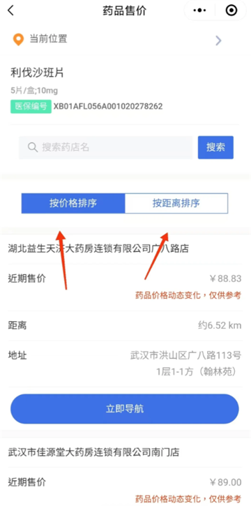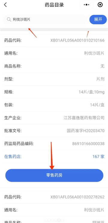 5. 系统将显示周边零售药房列表;