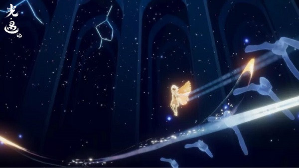 白鸟会带领我们前往宫殿入口,但需要8名玩家合力点亮建筑才能通关,单人难以完成。可以通过赠送道具或点亮他人来协助通关。