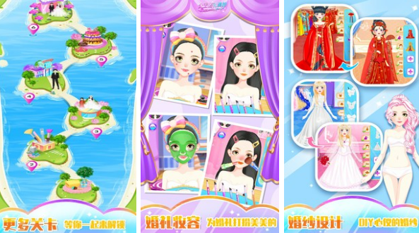 小公主终于要结婚啦,而作为公主最贴心的设计师,需要帮公主做一个独一无二的妆容,让她得以在婚礼中大放异彩。首先,玩家需要为公主做一个护肤的动作,然后就是为她画一个美美的妆,并挑选好适合公主的婚纱。当然,这个婚纱也可以由你自己来进行设计,这样的话才能更加彰显独特性。除了公主以外,也能适当的给王子搭配好看的礼服,并能跟公主的礼服形成联动。婚礼的现场也需要玩家参与来进行布置,快来迎接公主王子这场盛大的婚礼吧!