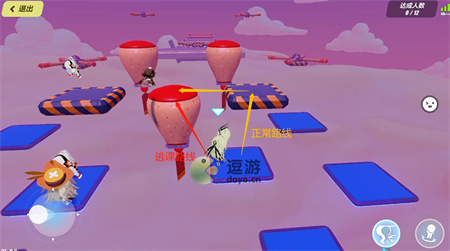 ②平台和蹦床之间的路线选择。正常路线是先跳到右边的固定平台,然后再跳到蹦床;但是也存在着逃课路线,直接往蹦床处跳,唯一的问题是如果距离太远的话可能会掉下去。