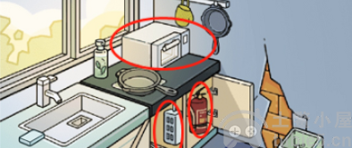 6、点开右下角的柜子,拔掉微波炉的电,用灭火器灭火,获得微波炉。