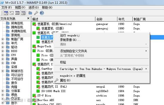 mamepgui作为单独的程序目前以升级到1.5.7版,不过随着版本的更新,程序bug却没人修复。在新版mame+可以看到大量CHD游戏竟然到了家用机游戏列表中,这是gui的bug而已。