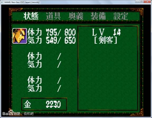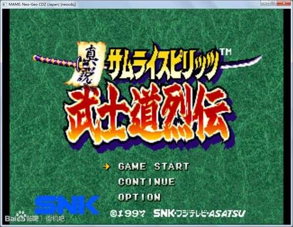 双击neogeocdz运行,此时你可以等待模拟器自己载入游戏,也可以按开始键(模拟器默认为键盘“1”键)进入下图界面