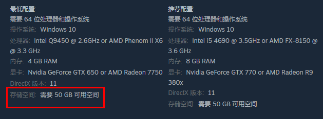 1、想要游玩盗贼之海,小伙伴们最少需要预留50G的内存。
