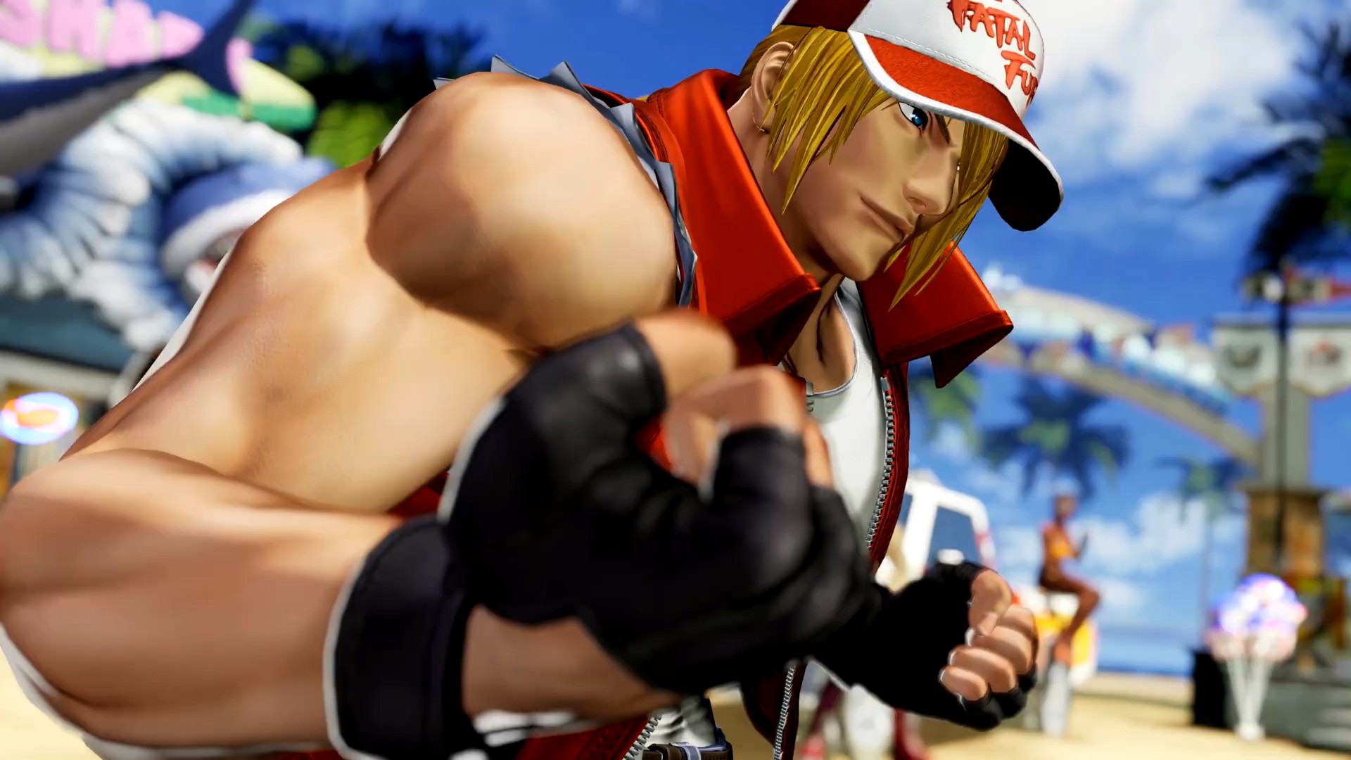 特瑞是《拳皇》系列经典的客串角色之一,也是SNK经典游戏系列《饿狼传说(Fatal Fury)》的主角。此外,在本次的PV中,SNK官方还将东丈、特瑞、安迪三人组成了“饿狼队”,并展示了这三名角色互相战斗的实机。