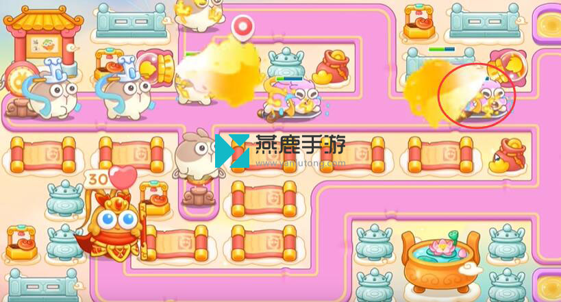 4、右边买魔法球打荷花缸和兔子,左边打萝卜门,不会控火的话,今天清除障碍物会很困难。