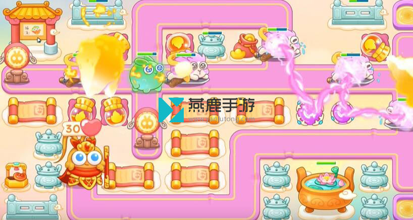 1、建立两个喷火器都打钱袋,就是靠间隙来回打,粉兔来了,就打左边钱袋就可以,粉兔没了,就继续来回交替控火。