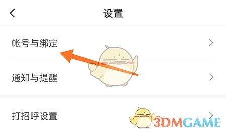 2、进入设置页面,点击账号与绑定;
