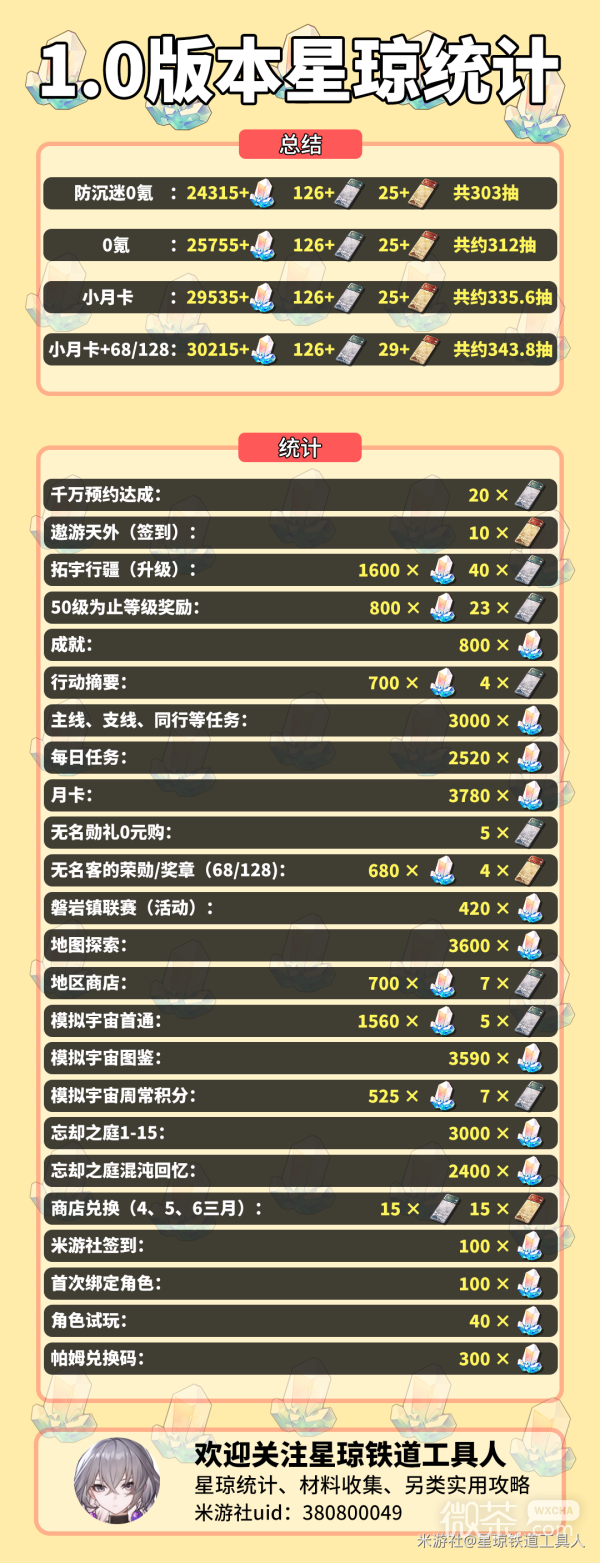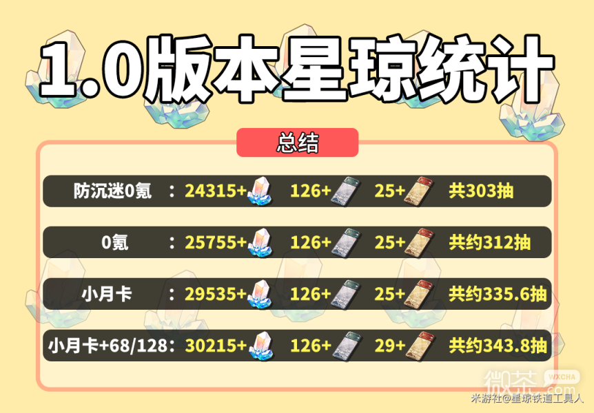 《崩坏:星穹铁道》1.0版本星琼获得统计