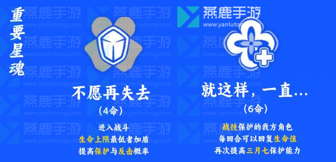 6魂:战技保护着的我方角色,每回合可以恢复生命值,能够再次提高三月七的保护能力。