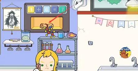 3、然后将化学室墙上的算数题改为1+6。