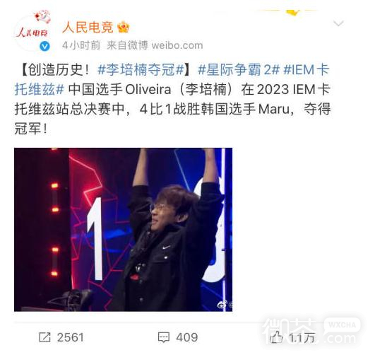 《星际争霸2》2023IEM卡托维兹站冠军为中国选手Oliveira李培楠,这是中国《星际争霸2》的第一个冠军,也是20年来中国在《星际争霸》项目上的唯一一个冠军。