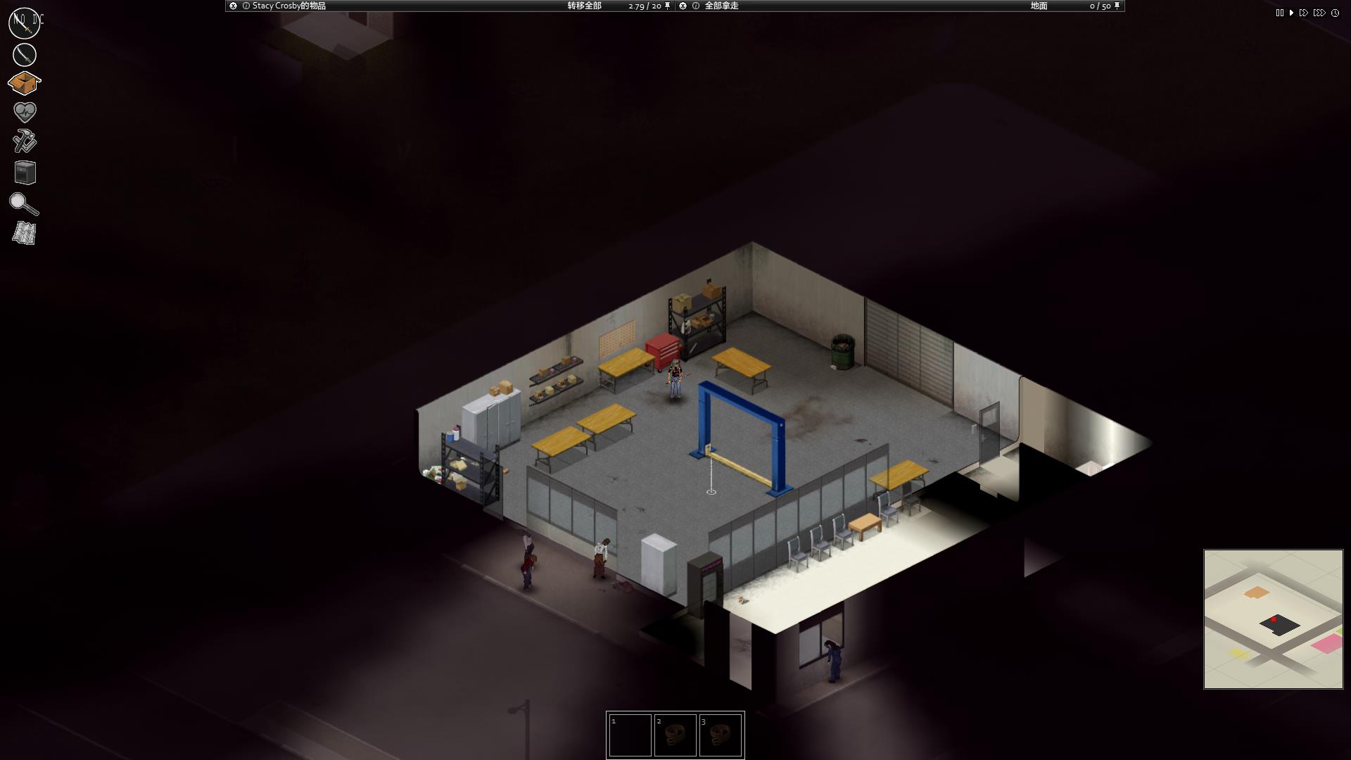 再之后就是拿着工程大锤去西点东北部酒吧旁边的枪店,这边的加固墙壁只有王大锤可以破坏,清理掉里面的僵尸之后就可以在枪店拿到游戏内大多数种类的枪和对应弹药,推荐在有卡车或者面包车这种后备箱大载重的汽车之后来这里一次清理完物品,因为小人是肯定带不完这么多东西的