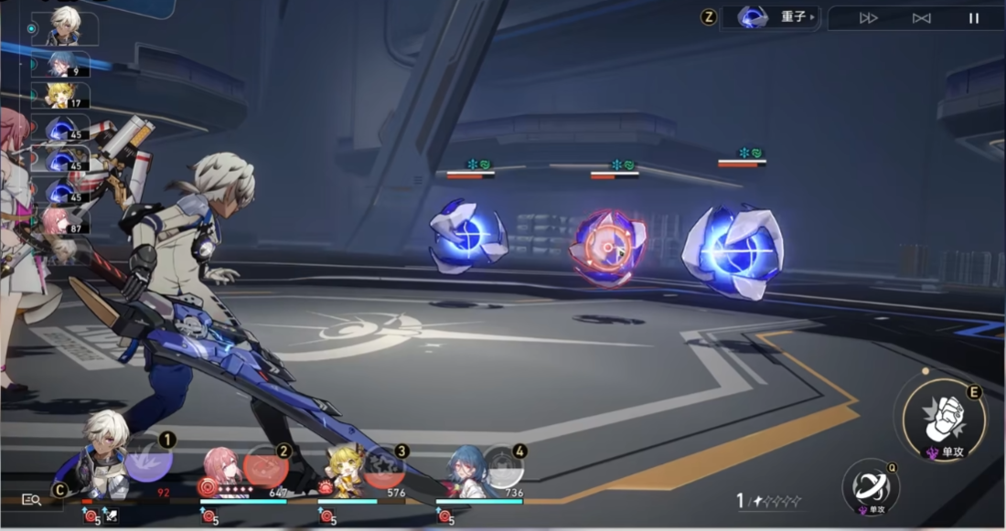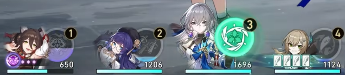 首先是行动条,在游戏中角色的行动与行动条息息相关,当角色处于行动条的上方时,就能够比敌人更快地进行攻击,在场的每个人的行动顺序都会显示在左上角,玩友们要注意看哦,避免错过了角色技能的释放时间。而角色行动条移动的距离就和速度有关了,每个角色都有自己的基础速度,速度较慢的是智识这种群体攻击类型的角色,速度较快的是巡猎这种超高单体伤害的角色。