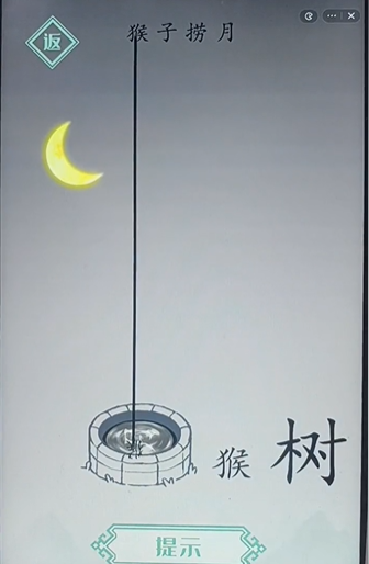 神奇的文字猴子捞月这一关卡的要求就是帮助猴子捞到月亮,方式其实就是很简单的,主要是把上面顶部的猴子进行拉动,拉到井里之后就能成功的捞到月亮通关这一关卡的。