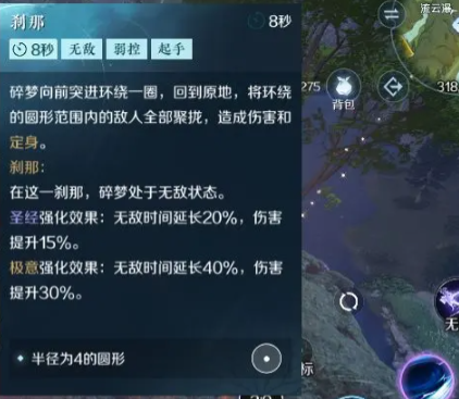 当发现下方有敌人时可以使用神剑天降,不仅有控制还有可观的伤害,是不错的先手技能。