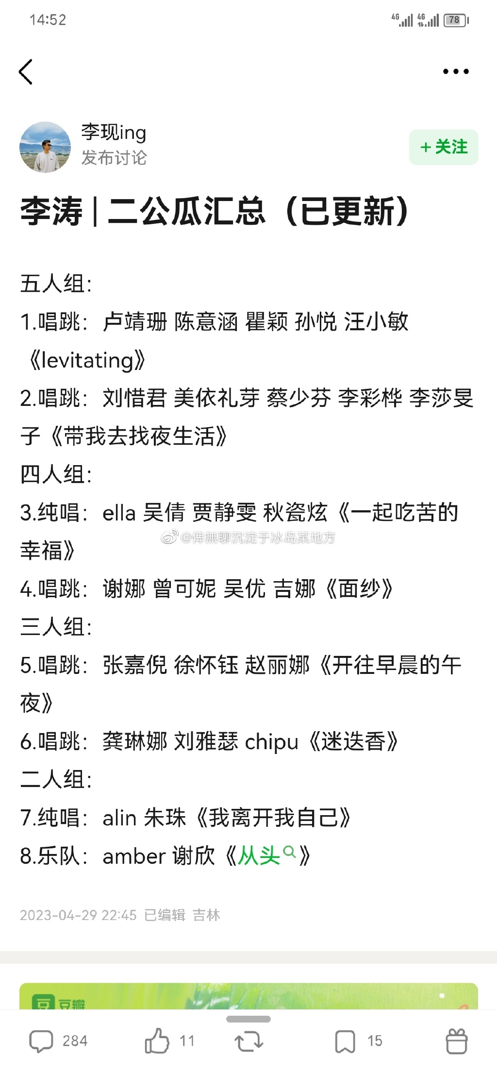 浪姐4二公分组名单有哪些