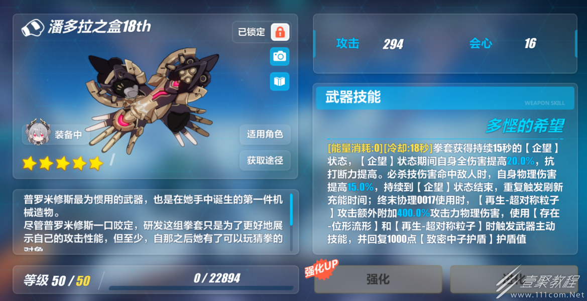 武器:首选专武潘多拉之盒18th,没有的话就用其他高面板武器,且sp消耗越低越好。