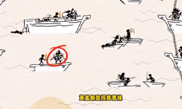 《爆笑大军师》火烧赤壁帮助周瑜打败曹操通关攻略 1、把战船的发动机给周瑜变成喷火器 2、将曹操的船用铁链连接好 3、黄盖假意授降曹操,并在穿上布满硝石 4、让桌子给孔明变出祭坛 5、然后借“东风” 6、然后用小兵手中的火把喷火器点燃,成功