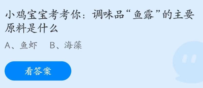 蚂蚁庄园5月19日调味品鱼露的主要原料是什么