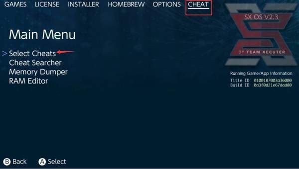 2、然后打开王国之泪,按home键,进入sxos的金手指页面。