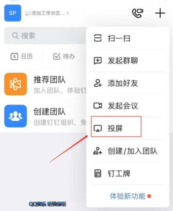 3、接着打开钉钉,点击右上角的+图标,点击投屏