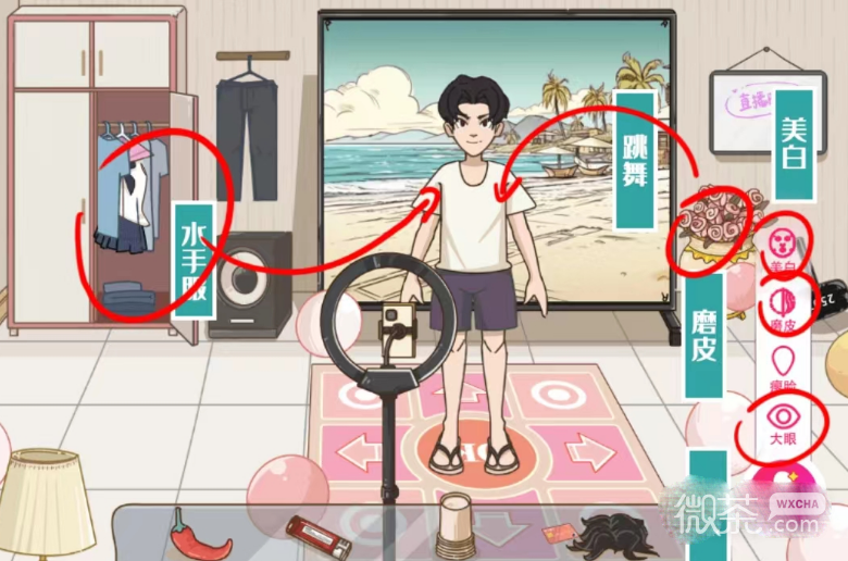 6、最后给主播戴上假发即可过关