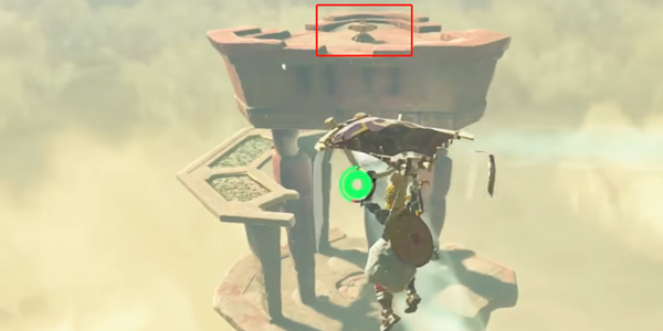 3、飞到刚刚的塔那里,这里会有沙尘暴让地图失效,我们爬到塔的中央。