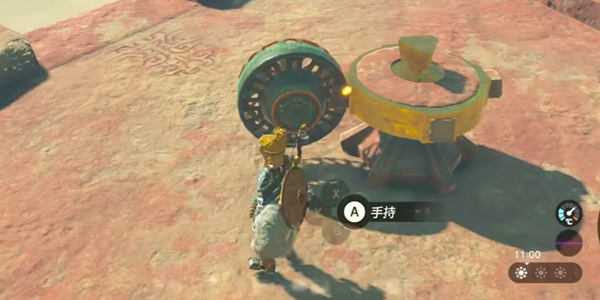 9、正常我们可以通过敲碎下方塔中间的碎石,利用浮游石将操作杆运输到上方推动圆盘。