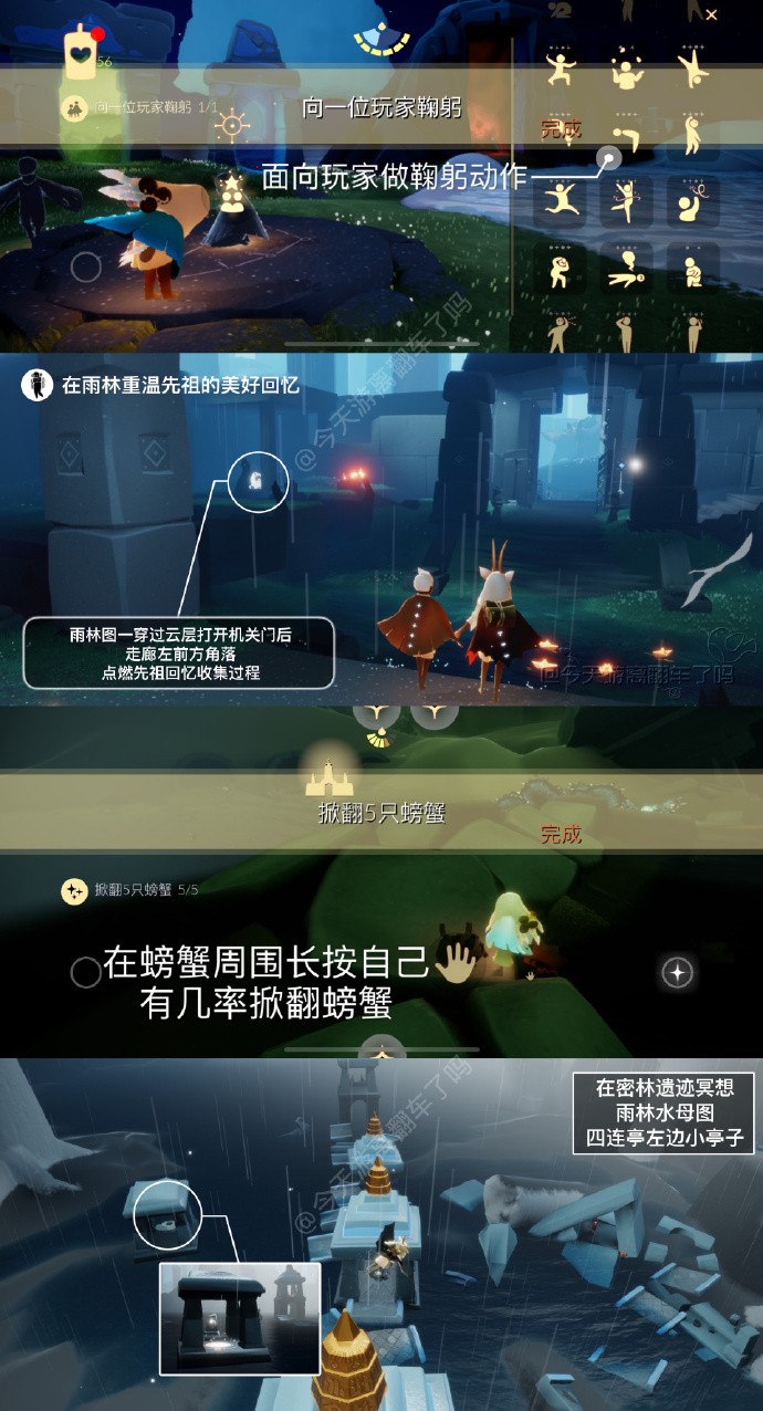 4、第四个每日任务是:在密林遗迹冥想:在雨林水母图中间四连亭左边的小亭子下石碑前光圈处打坐并留言