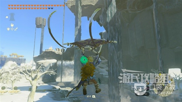 之后利用雪山区域中的众多瀑布向时之神殿方向移动。