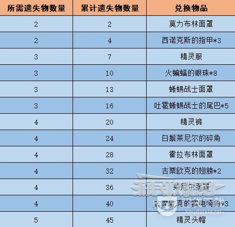 累计数量并未计算情节挑战【寻找魔犹伊的遗失物】中用于交换波克布林面罩的1个遗失物。