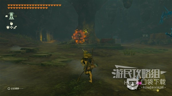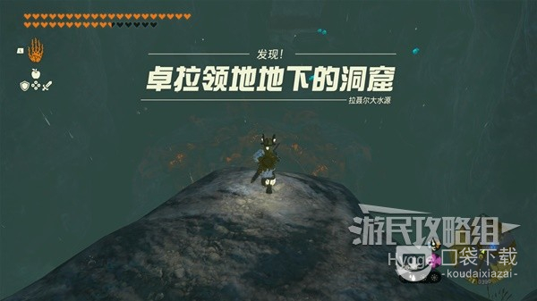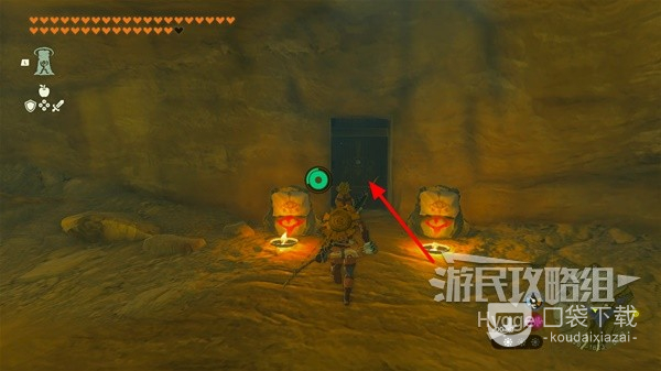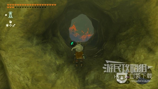 在此处可以看到山坡上有一个山洞,进入山洞内部。