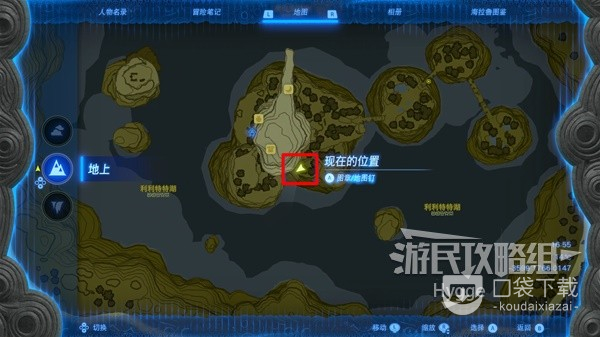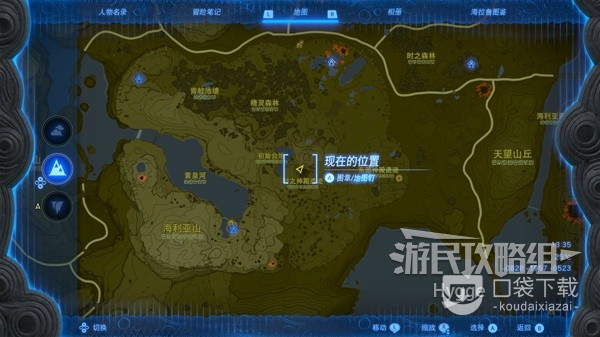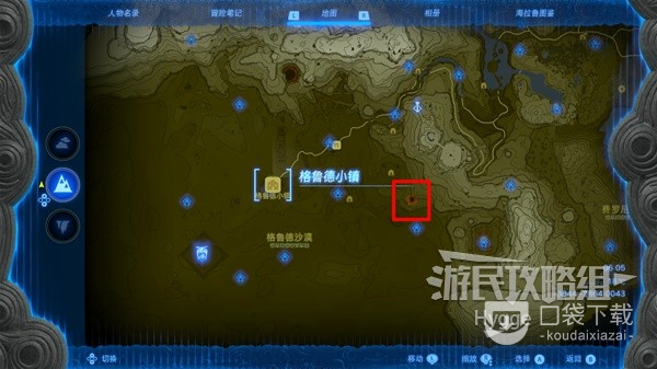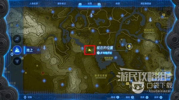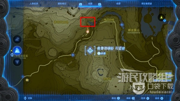 休息到晚上后直接传送至一始村北边的乌尔利山鸟望台,在西走来到下图标记位置。