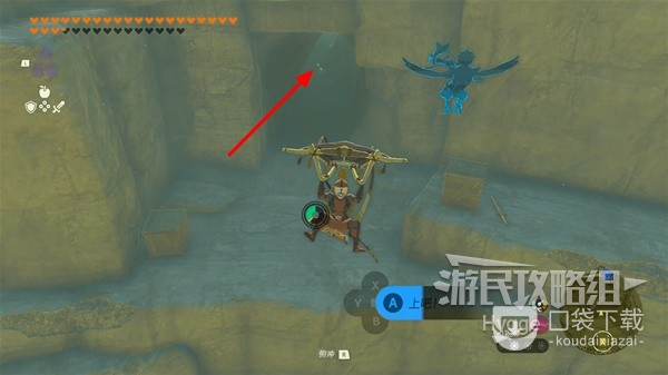 从神殿屋顶起飞滑翔至下图标记处的瀑布处攀瀑向上。