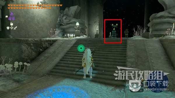 想要找到该神庙必须要先找齐整套伊盖队的防具,首先来到下图所示位置。