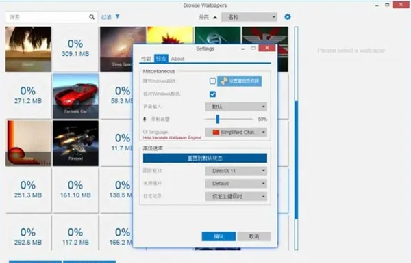 第一步、点击Wallpaper Engine破里的齿轮图标,就会进入到设置界面。