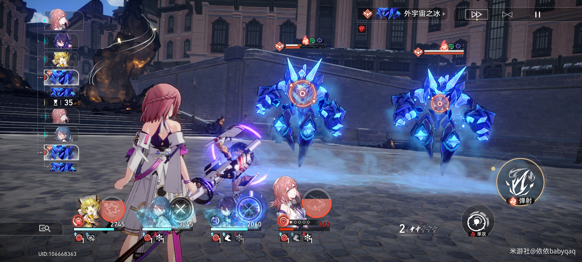混沌回忆七再练度低的时候还是比较考验策略性的,上半层难度不是很高,第三场景的两个外宇宙之冰要在第二场景即将结束时充好能量,等到第三场景后,甩大招给一个怪,给她打瘫痪,这样两个人就不会同时放大招导致队伍暴毙了,然后流程就是不断击破一个人的软点,火+量子基本无脑过。