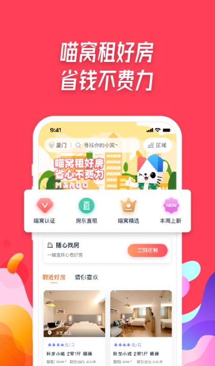 喵窝租房是一款租房平台,以提供个性化的租房服务为特点。喵窝租房的核心功能是根据用户需求进行房源的推荐。用户可以通过喵窝租房APP设置自己的喜好、预算和地理位置等条件,喵窝租房会根据这些条件为用户推荐合适的租房房源。房源信息包括租金、户型、位置、设施等详细信息。