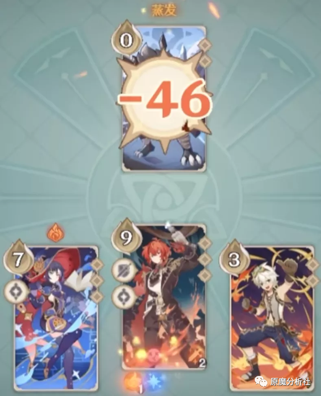 讨债人的打法和迪卢克相差无几,但实现起来却比迪卢克容易些,要求3点元素骰和2点能量,就算和玩家对局的实战中也比较容易实现的打法,但缺点也非常明显,打出这核爆伤害的同时也会消耗大量的手牌,导致后续作战能力不足。