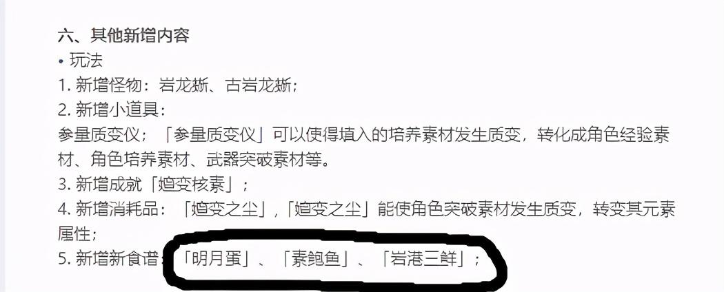 在公告中,新增了三个菜谱,分别是明月蛋、素鲍鱼、岩港三鲜。